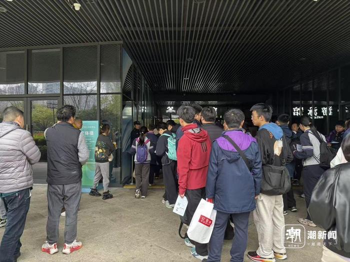 一位家长告诉记者,孩子从小学一年级开始练游泳,前几天又来考点试游了。“孩子发挥挺稳的,心态也不错。上午考完,中午好好吃一顿!”