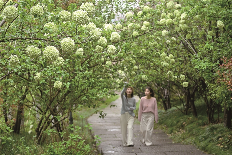 湘湖绣球花开 如堆云叠雪