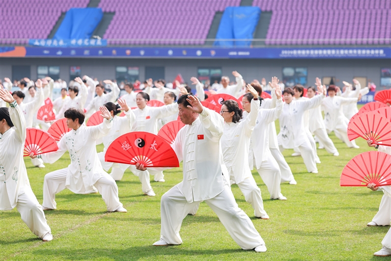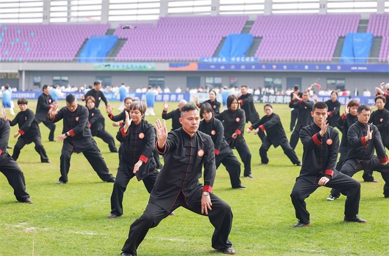 大家动作舒展,气势恢宏,充分展现了全民健身的良好氛围,传承中华传统武术文化。