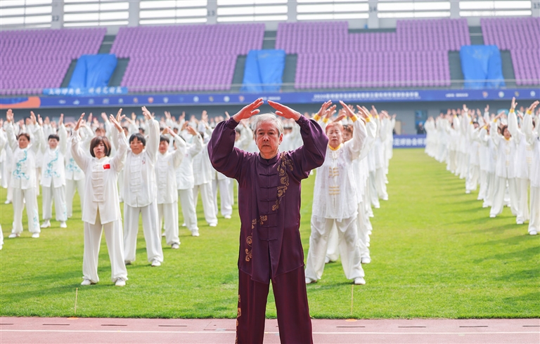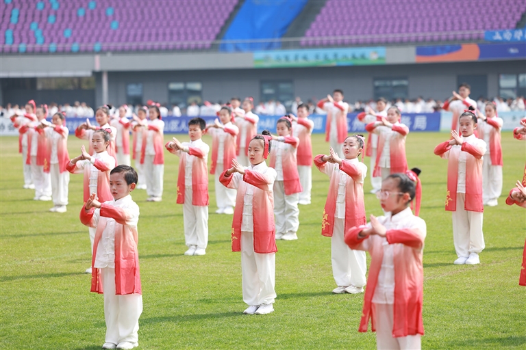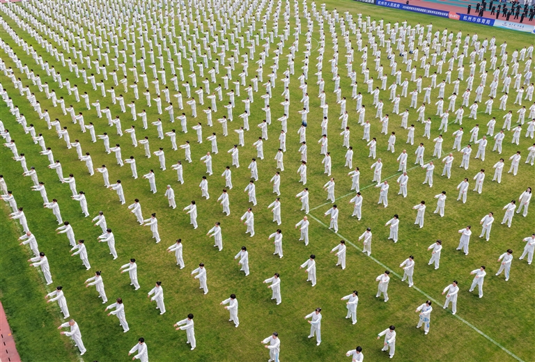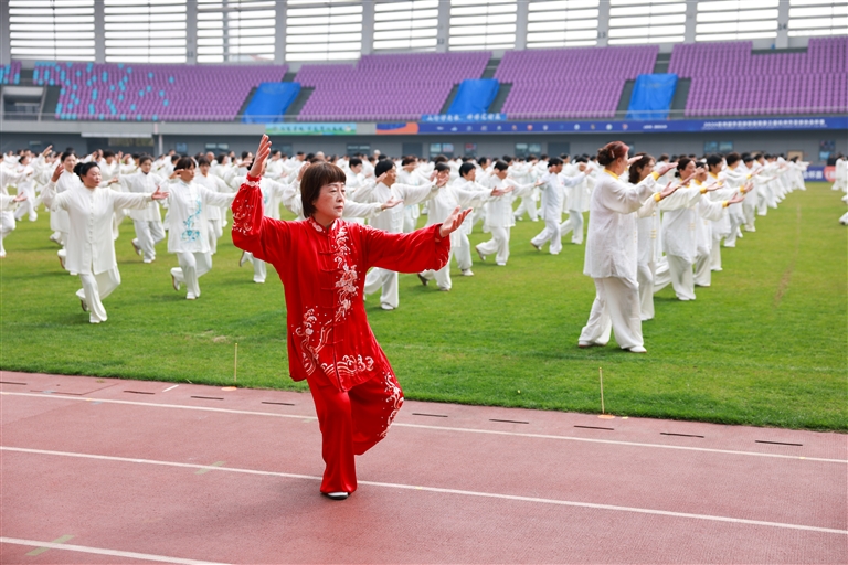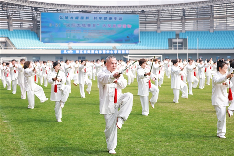 当天,我区1300余名太极拳爱好者齐聚区体育中心,开展大型太极展示活动,共庆这一全球太极拳节日。