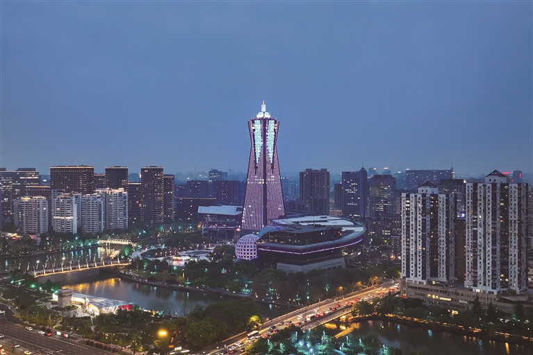 昨天是第19个“世界孤独症日”。当晚18点至19点,西湖文化广场环球中心、杭州奥体中心“大小莲花”、复兴大桥三大杭州地标同步亮起蓝灯,以光为语,温柔地拥抱“星星的孩子”,用爱与包容,照亮他们前行的路。图为昨晚,西湖文化广场环球中心为“星星的孩子”点亮蓝灯。