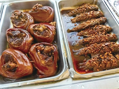 服务员告诉记者:“小青龙38元半只,76元一只,很受欢迎,今天已经第三屉了;蹄髈也已经卖了20多只。”