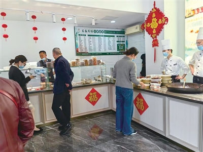潘总告诉记者,现在外摆每天营业额稳定在15000元到20000元间,经过前两年的运营,现在比较稳定,所以用一间营业房专门外摆,“宝盛便民熟食铺”已成了宾馆的优质项目。