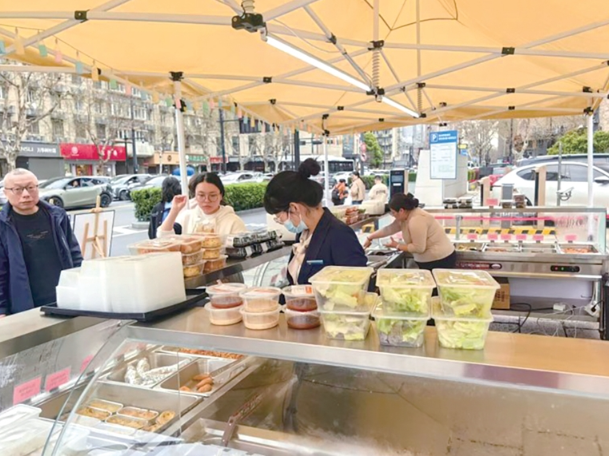 “同时,我们增加了低卡、素食、儿童餐,适配健身、家庭客群。目前线上微信群从7个增加到了15个,顾客可以提前下单或订单提前取。现在的优惠是消费满50元减5元,满40元可以集一个章,集满6个章就可以送一份20元以下的菜品。”