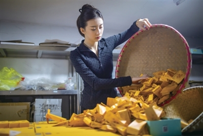 张钰把小袋茶叶倒出,准备包装入盒。