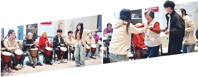 “这是目前比较流行的音乐疗法。非洲鼓高低音分明,能刺激老人的感官。”易丽说。