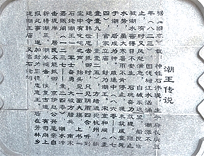 文中提到,市民龚先生向橙柿直通车反映,潮王桥下的《潮王传说》石刻只有240余字,但有不少错误。比如,前文说“神(指潮王)姓石讳现”,即说潮王的名字叫石现,但后文却说是石瑰,前后矛盾,据多家权威资料,潮王名叫石瑰,而非石现;又比如,倒数第四行“京伊”的“伊”和倒数第三行“潮水褪去”的“褪”均为错别字,正确的应该为“京尹”和“潮水退去”等等(详见快报3月23日03版)。