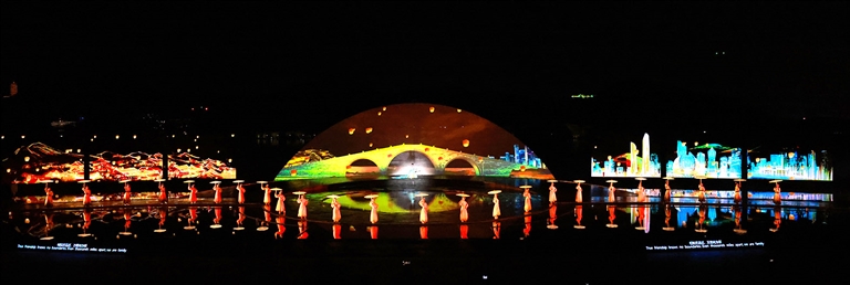 4月3日,大型水上实景演艺《湘湖·雅韵》焕新归来,在湘湖湖山广场再度启幕!