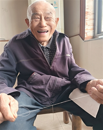 3秒成功穿针引线,韩爷爷很开心。