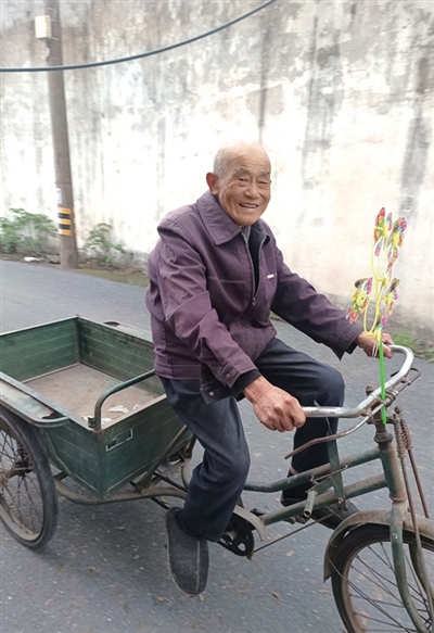 每天骑三轮车在村里转一圈