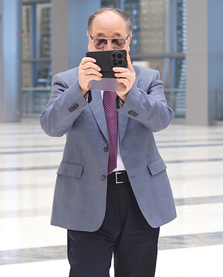 莫言用手机拍摄媒体记者 记者 江玥 摄